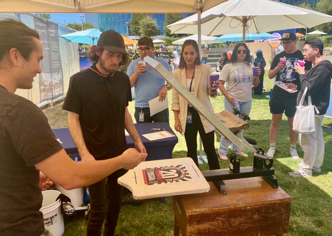 We bring the press to your event — and invite your participants to make something on the spot at our mobile screen printing station.